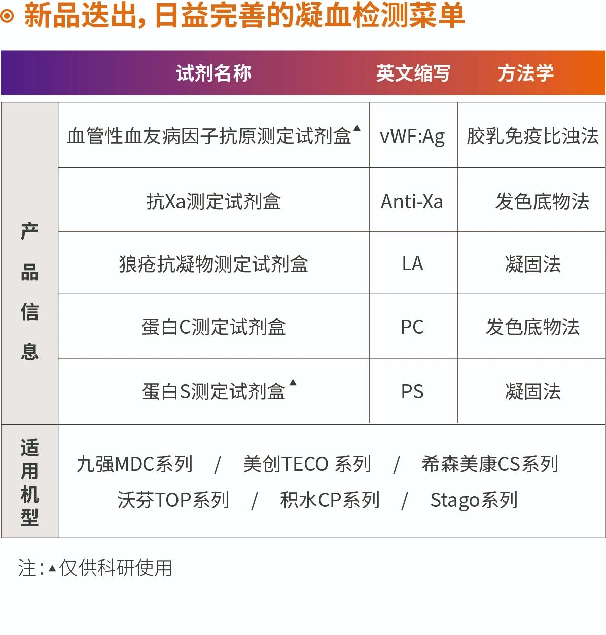 九強(qiáng)生物是中國(guó)領(lǐng)先的臨床體外診斷產(chǎn)品與服務(wù)供應(yīng)商之一,目前擁有自主研發(fā)的全自動(dòng)凝血檢測(cè)分析儀MDC7500和MDC3500以及德國(guó)原裝進(jìn)口的Coatron5000、Coatron3000和Coatron1800,專業(yè)配套的凝血檢測(cè)試劑在滿足自有檢測(cè)系統(tǒng)的同時(shí)也能完美匹配主流血凝檢測(cè)系統(tǒng),滿足不同客戶的需求,為臨床提供全面的血栓與止血實(shí)驗(yàn)室解決方案。