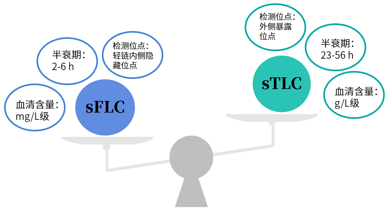由于sFLC靈敏度更高,半衰期更短,能更加及時地反映病情變化,為疾病的早期診斷提供更可靠的依據,近年來成為優(yōu)于總輕鏈測定的標志物。