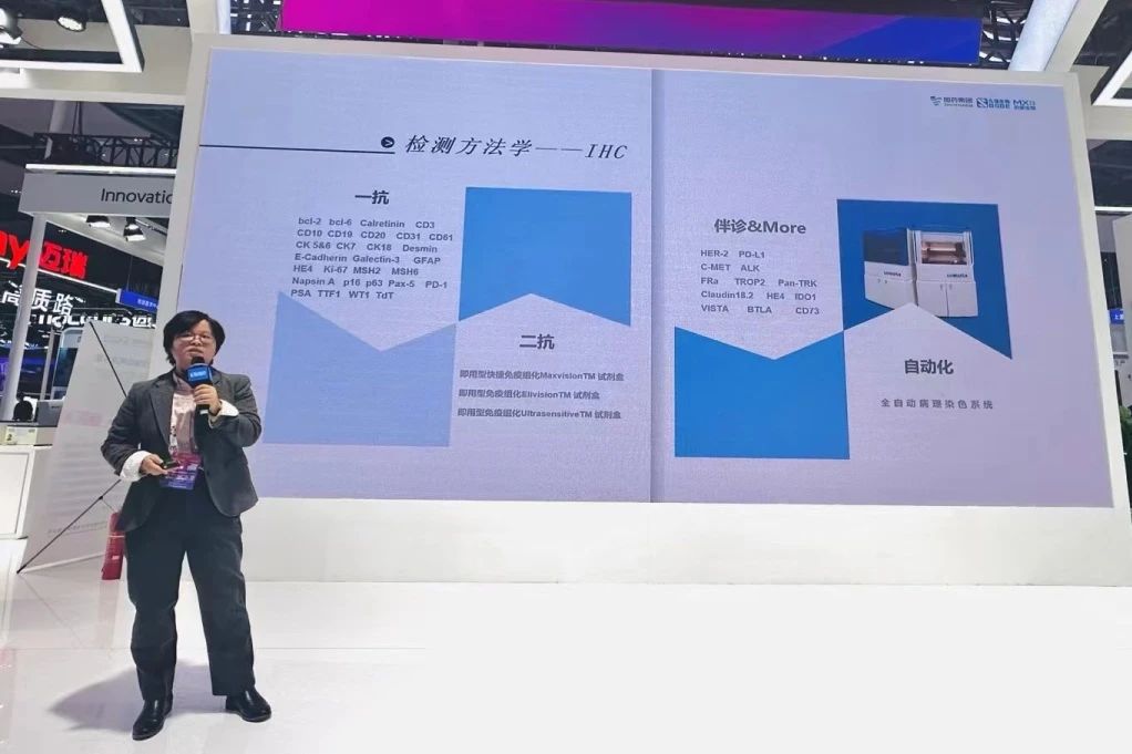 值得一提的是,我們于展位進(jìn)行了CTC專題的宣講活動。中科納泰董事長、國家納米科學(xué)中心研究員胡志遠(yuǎn)教授受邀進(jìn)行深度專訪,并為大家?guī)砭实腃TC檢測內(nèi)容——“CTC還是ctDNA? CTC2.0時代的MRD臨床應(yīng)用”的宣講,與大家交流分享中科納泰循環(huán)腫瘤細(xì)胞檢測-腫瘤捕手技術(shù)在臨床市場的應(yīng)用和發(fā)展。