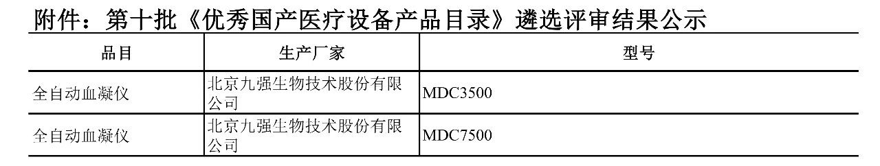 喜訊 | 九強(qiáng)生物凝血分析儀入選第十批《優(yōu)秀國(guó)產(chǎn)醫(yī)療設(shè)備產(chǎn)品目錄》