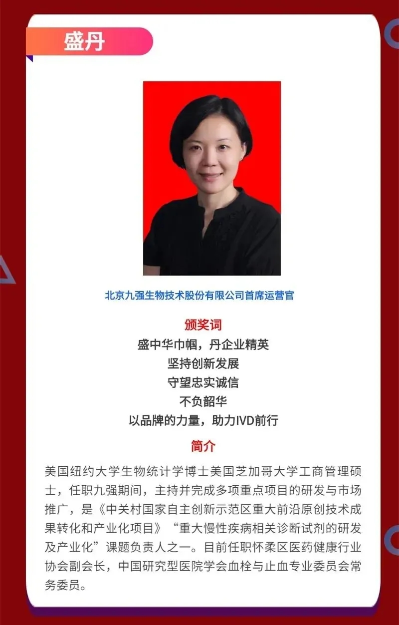 快訊|九強生物首席運營官盛丹女士榮獲2020年中國體外診斷產(chǎn)業(yè)領(lǐng)軍人物!