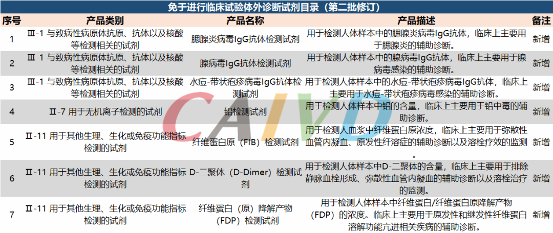 新增7項體外診斷項目進入免臨床試驗醫(yī)療器械目錄(第二批修訂)